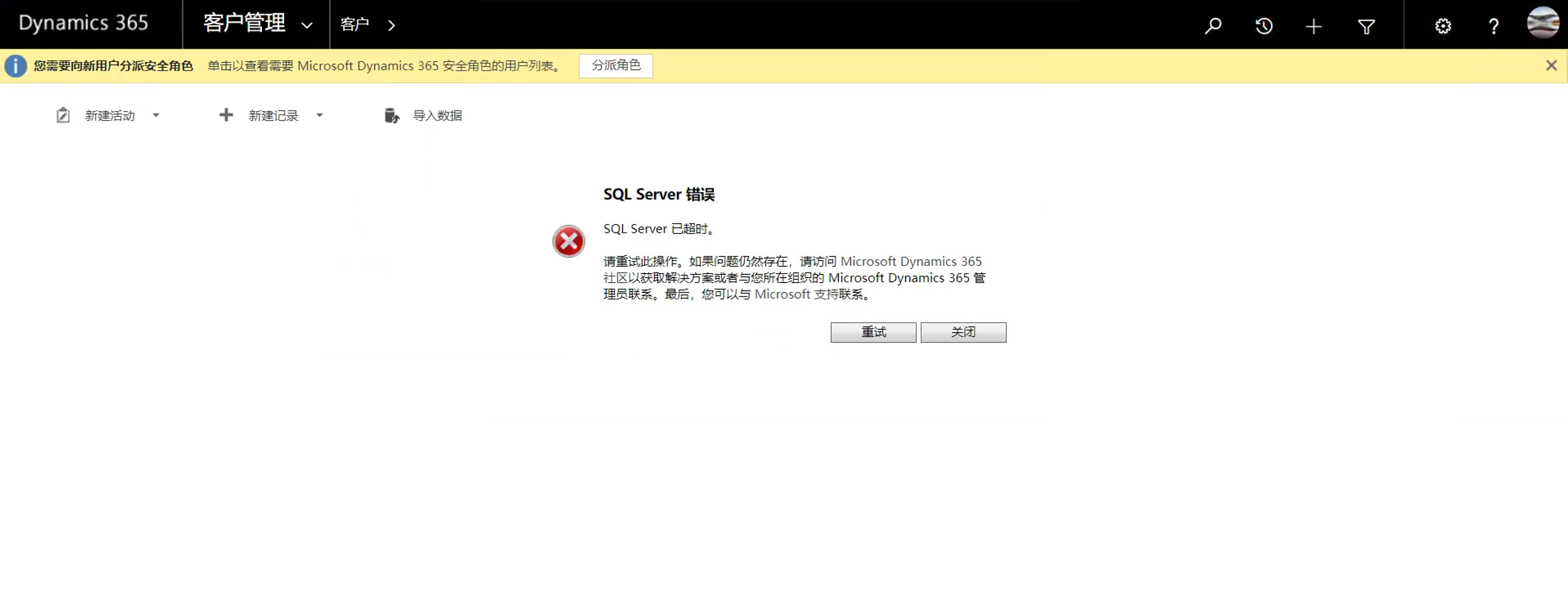 之前遇到过几次CRM实体表里的数据太大导致默认视图加载太慢(超过一分钟)或者直接报错SQL Server超时,排除网络和服务器问题后,基本确定是数据库sql查询超时导致,通过给数据库表加索引解决,这里记录下我的分析和解决过程。