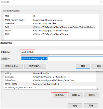 环境变量-->变量名:JAVA_HOME 变量值:文件路径