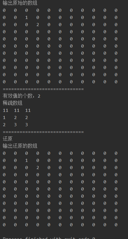 // 遍历二维数组,将非零的值,存放稀疏数组中