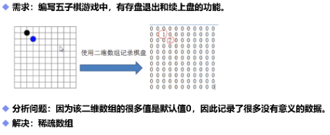 - 当一个数组中大部分元素为0,或者为同一值的数组时,可以使用稀疏数组来保存该数组
