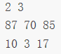 #include<iostream> #include<math.h> using namespace std; int a[8][8]; int b[8][8]; int p,q; const int d[8][2]={1,0,-1,0,0,1,0,-1,1,1,-1,1,1,-1,-1,-1}; //int d_x[8] = {0,0,1,1,1,-1,-1,-1}; //int d_y[8] = {1,-1,0,1,-1,0,-1,1}; int sum,sm; int max(int x,int y) { return (x > y) ? x : y; } void dfs(int m,int n){ if(n == q+1) { dfs(m+1,1); return; } if(m == p+1) { sum = max(sum,sm); return; } dfs(m,n+1); // 不取数字 if(b[m][n] == 0){ //不能用布尔数组 会重叠 sm += a[m][n]; for(int i = 0;i < 8;i++){ b[m + d[i][0]][n + d[i][1]]++; } dfs(m,n+1); //取这个数字 sm -= a[m][n]; for(int i = 0;i < 8;i++){ b[m + d[i][0]][n + d[i][1]]--; } } } int main(){ int n; cin>>n; while(n--){ cin>>p>>q; for(int i = 1;i <= p;i++) for(int j = 1;j <= q;j++) cin>>a[i][j]; sum = 0; dfs(1,1); cout<<sum<<endl; } return 0; }