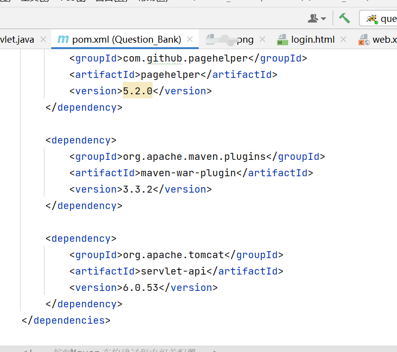 “ 模块'Question_Bank'从 Maven 导入。对其配置做出的任何变更在重新导入,后可能丢失。”这句话的意思是你新加入的jar包(用以上的方式手动加的)因为你的项目是maven,所以该jar包重新加载后可能会不见,又要重新再加。所以,根本的解决办法是使用Tomcat8。对此我只想感叹一句,maven什么时候可以把servlet的包更新下撒!