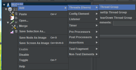 1、先增加一个线程组,名称自行修改