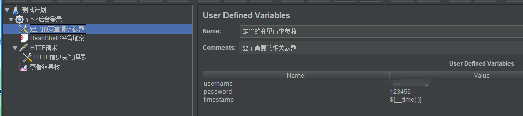 注:我的接口需要三个参数,分别是username,password,timetamp