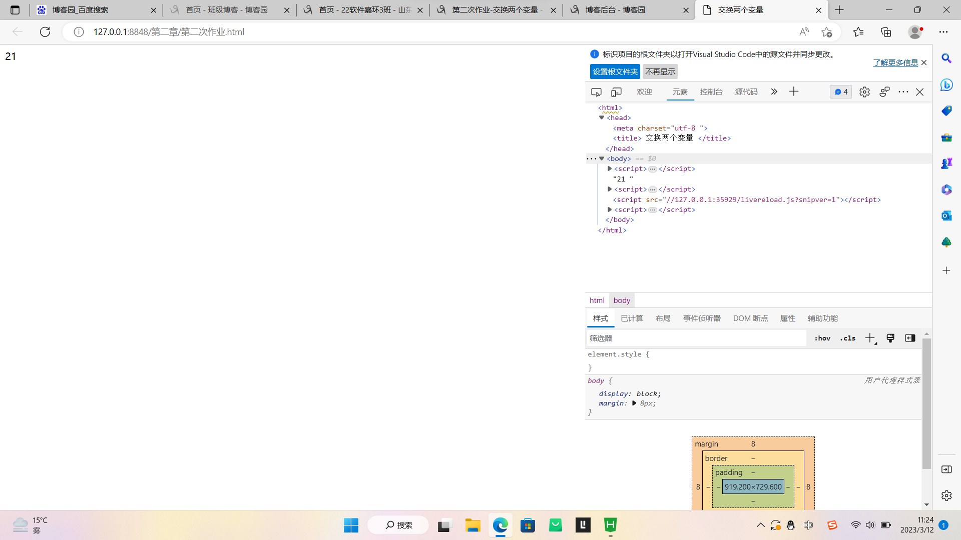 | 这个作业的目标 | <第二次作业-交换两个变量的值&Markdown语法学习> |