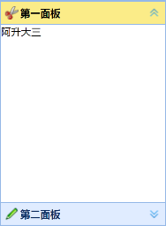 1 <div data-options="region:'west'" style="width: 200px;"> // accordion 折叠面板 2 <div class="easyui-accordion" data-options="fit:true"> //设置data-options=“fit:‘true’”,使得面板完全展开,自适应 3 <div title="第一面板" data-options="iconCls:'icon-cut'">标题图标为剪刀</div> //设置data-options=“iconCls:‘icon-cut’”,设置面板的图标 4 <div title="第二面板" data-options="iconCls:'icon-edit'">标题图标为笔</div> 5 </div> 6 </div>