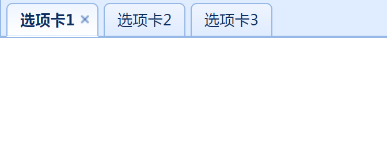 1 <div data-options="region:'center'"> 2 <div class="easyui-tabs"> 3 <div title="选项卡1"></div> 4 <div title="选项卡2" data-options="closable:true"></div> //closable:true 设置为可关闭,也就是多了个× 5 <div title="选项卡3"></div> 6 </div> 7 </div>