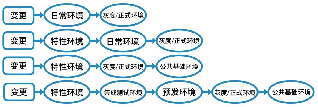 在阿里内部,同样有十分丰富的测试环境区分。各种测试环境的命名与其作用息息相关,虽然业界有些常用的名称,但都未形成权威的标准。实际上,环境的名称只是一种形式,关键还在于各种测试环境应当分别适配于特定应用场景,且场景之间应当或多或少存在一些差异。