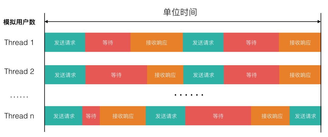 通常的压测引擎,采用的是 BIO 的方式,利用多线程来模拟并发的用户数,每个线程的工作方式是:请求-等待-响应。