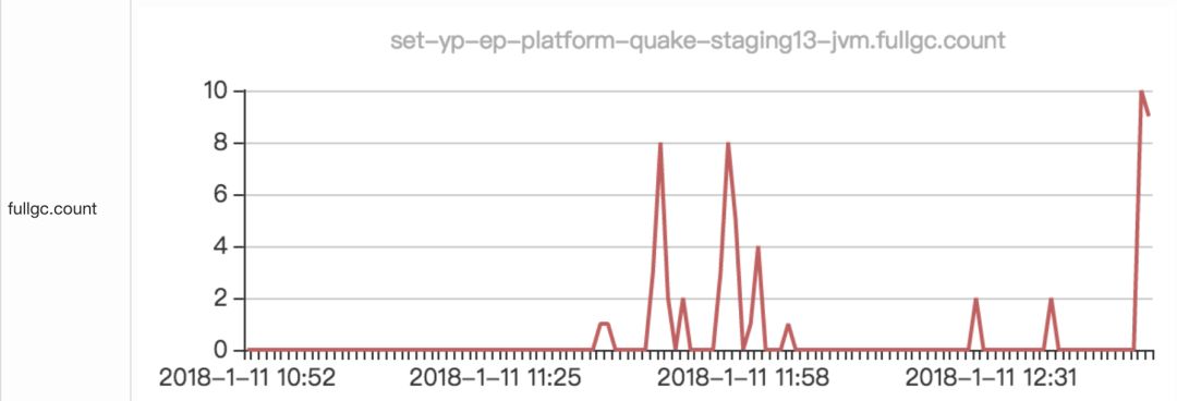 下面看一组 Full GC 产生的压测曲线: