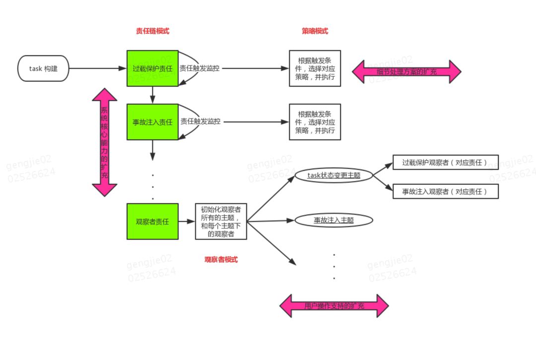 在代码设计层面,我们采用了观察者和责任链模式,将会触发事件的具体情况作为观察主题,主题的订阅者会视情况类型产生一连串执行事件。而在执行事件中又引入责任链模式,将各自的处理逻辑进行有效的拆分,以便后期进行维护和能力扩充。