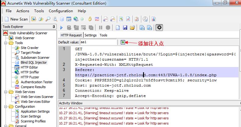 在相应参数位置按+添加注入点,让AWVS进行注入探测,可以dump有sql漏洞的数据库内容。