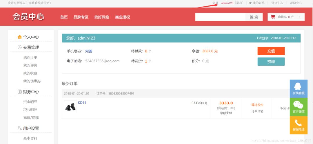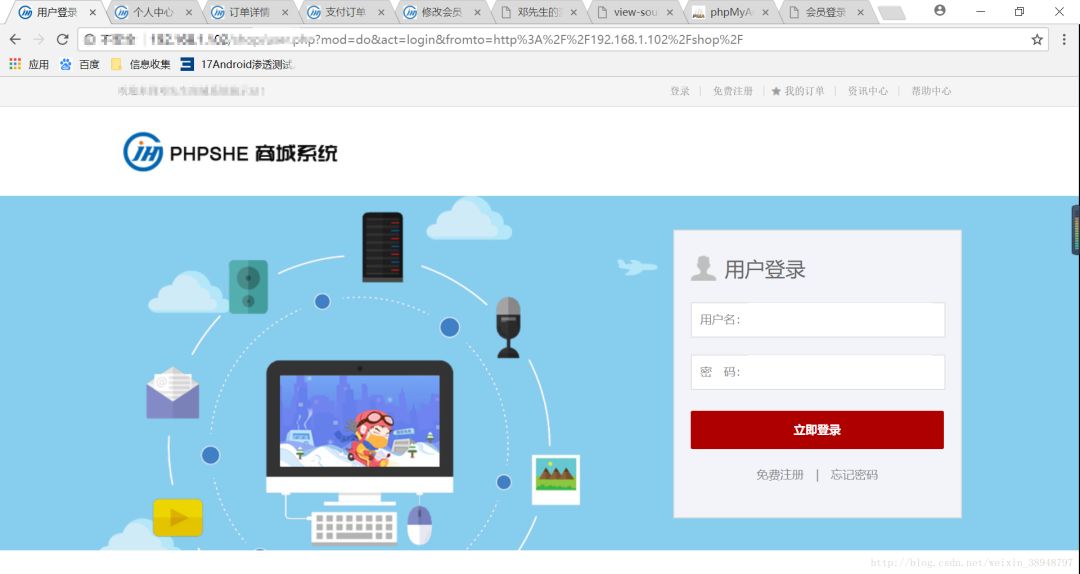 第三步:这时候我们在商城系统的登陆框中输入测试用户名:1111和密码2222,(便于查找参数即可),点击【立即登陆】