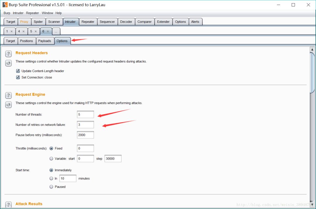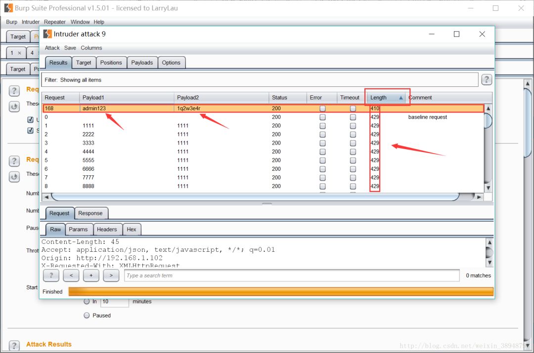 最后:点击主菜单中的【Intruder-Start attack】开始攻击。
