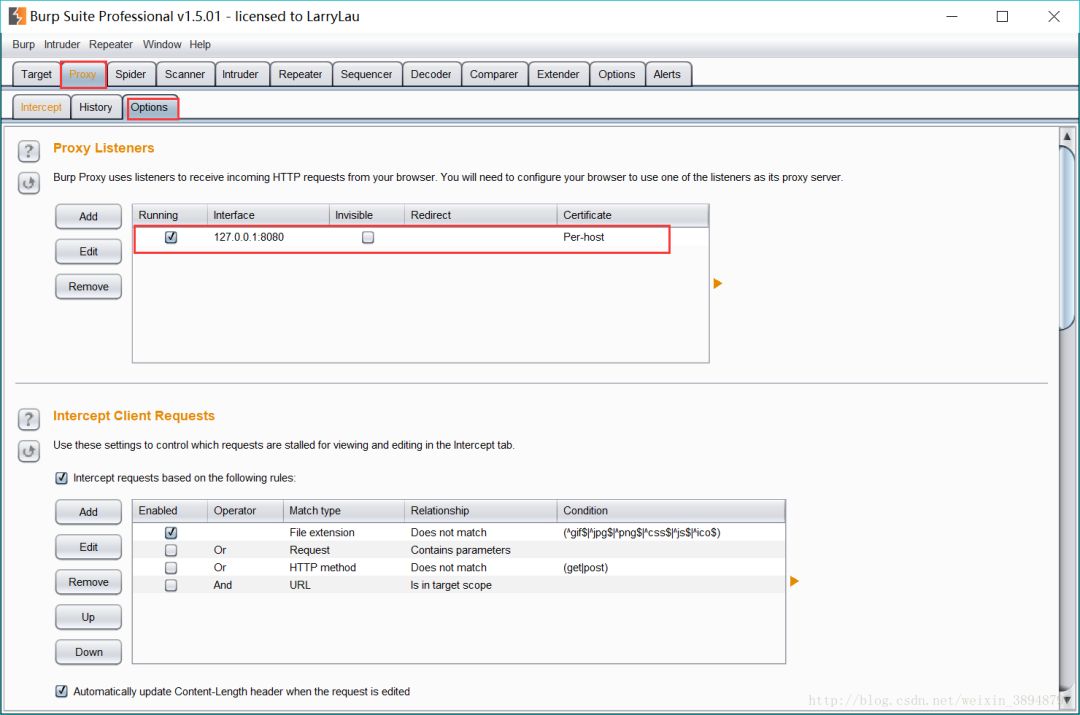 Burpsuite安装都是傻瓜式的,需要注意的是Burpsuite是基于Java开发的,所以要先配置java环境。安装成功后如果提示需要burpsuite license key我的解决办法是再burpsuite的安装目录下创建cacert.der的安全证书就可以不用 license key正常使用了。