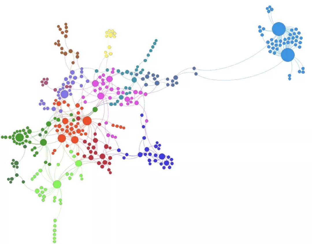 这是louvain划分的某个graph的可视化效果(绘制工具:gephi)