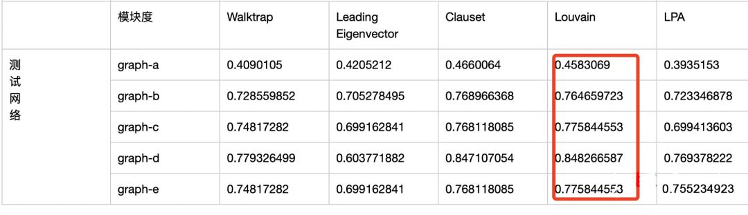 在实际小规模graph上对比了主流的社区发现算法,Louvain在划分社区质量和划分稳定性上均表现不错的,且能分布式实现。