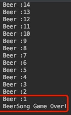 System.out.println("BeerSong Game Over!");