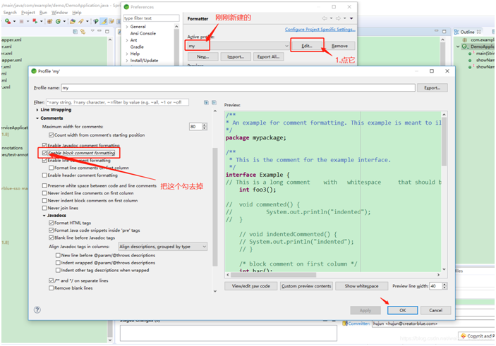 eclipse中解决/**/多行注释代码后,格式变乱的问题