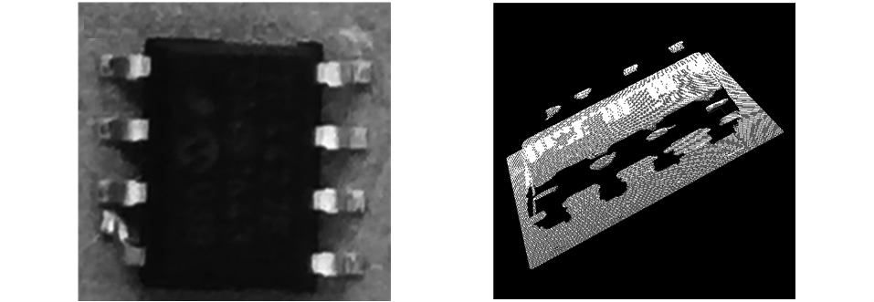 可利用线激光测量仪、二维运动平台实现芯片的三维扫描。引脚分割、平面拟合后计算各个引脚到平面最大距离,若小于阈值则共面度合格。