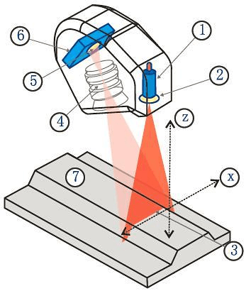 激光测量仪采用激光三角测量原理,利用发射器将激光投射到待测物体表面上,通过传感器/待测物体的移动,即可得到完整轮廓测量结果。