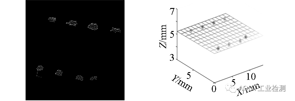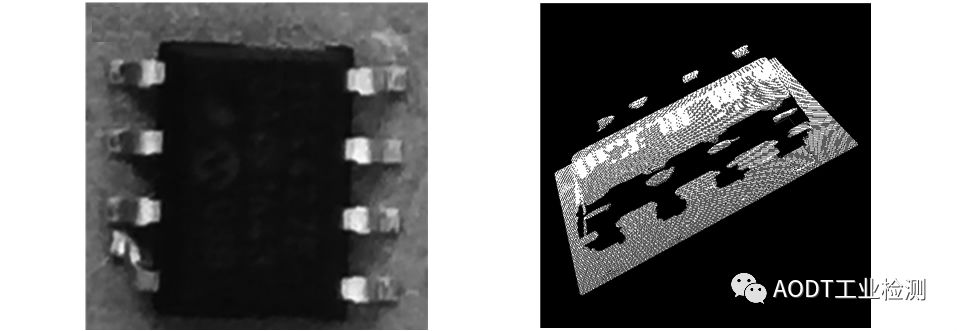 可利用线激光测量仪、二维运动平台实现芯片的三维扫描。引脚分割、平面拟合后计算各个引脚到平面最大距离,若小于阈值则共面度合格。