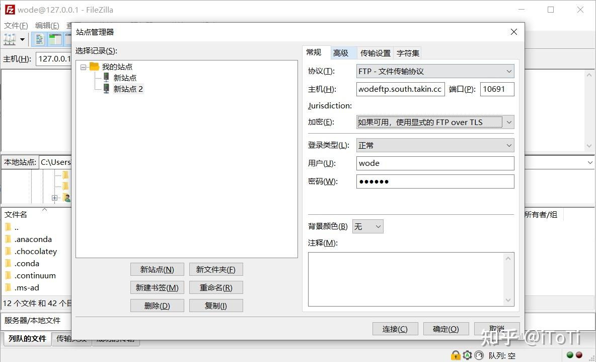 5、然后在 FileZilla 客户端里配置新创建好的映射