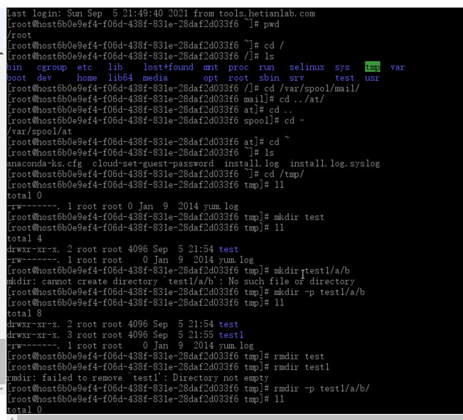 举例:刚刚在/tmp里面创建了目录,我们来把他们删除