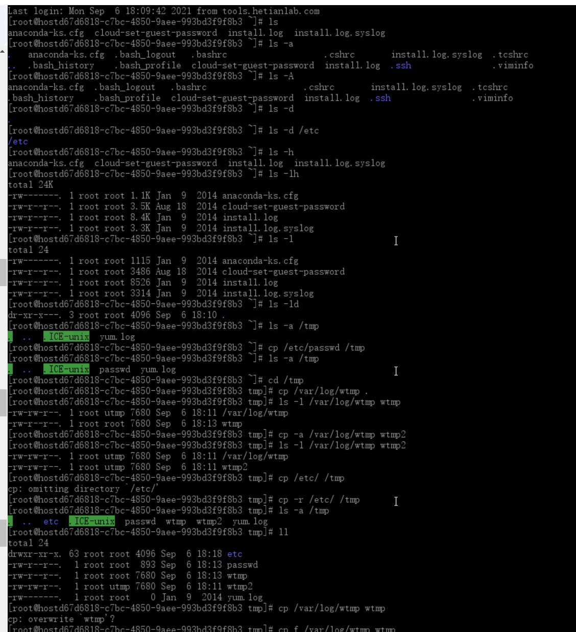 例:以root身份,将/etc/passwd文件复制到/tmp下