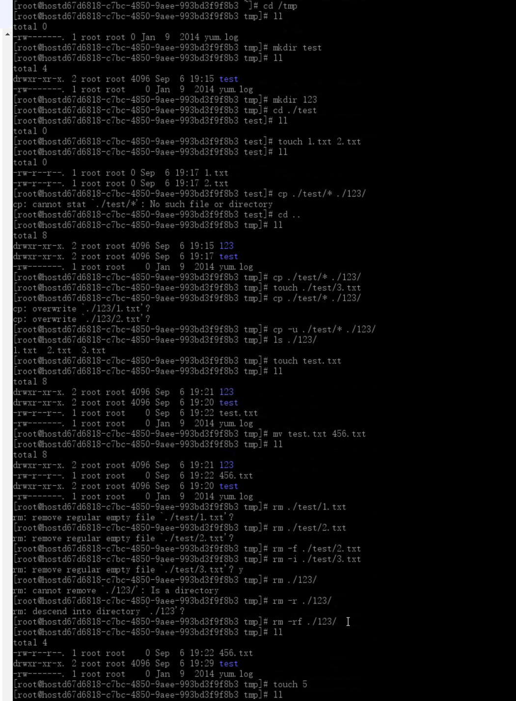 例:删除我们之前在/tmp/test目录下新建的1.txt ,2.txt,3.txt 和/tmp/123目录,分别用以上不同的参数