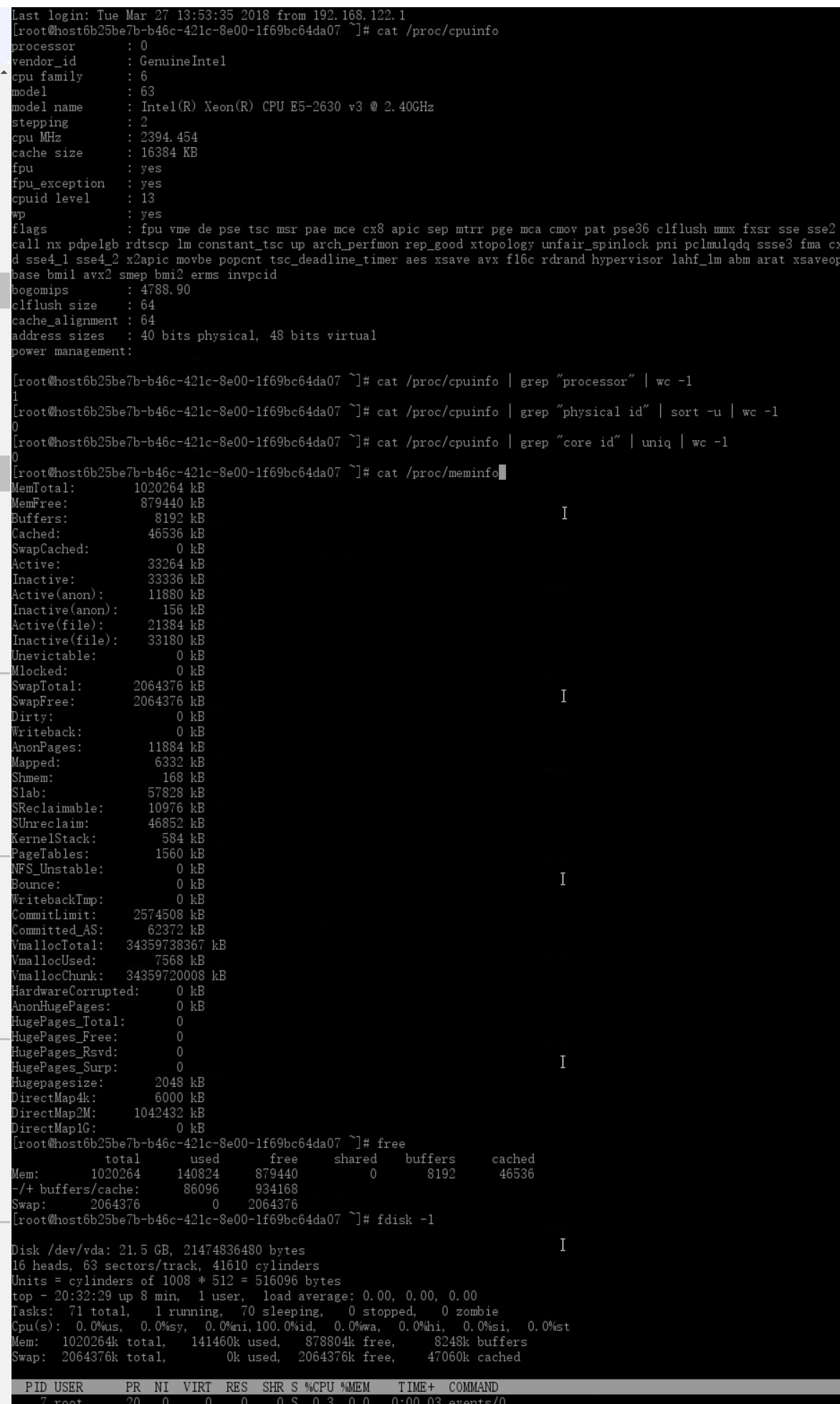 查看core id的数量,如果有两个逻辑CPU具有相同的 core id ,意味这,CPU启用的超线程