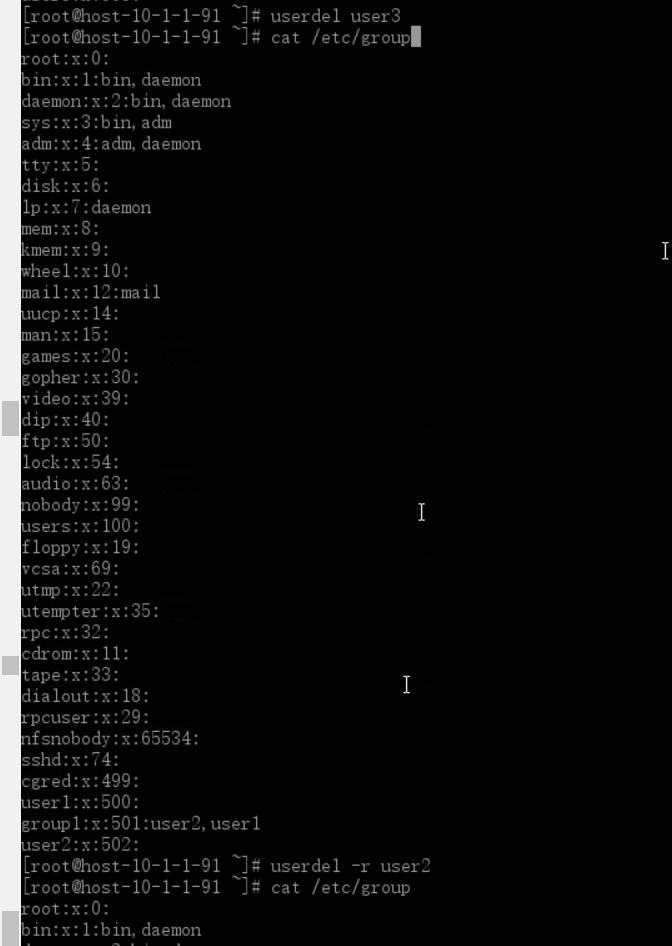 6)删除用户user3,用户uers3从用户组中消失