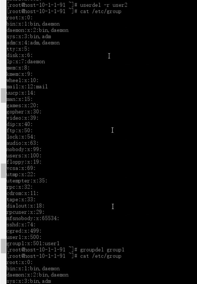 8)删除组group1,则组group1中的用户则被分配到其自己分配的私有组中。