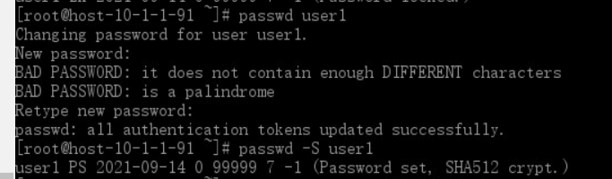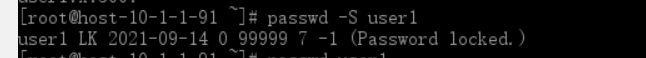 在创建完用户user1后,没给用户passwd口令时,账户默认为禁用状态: