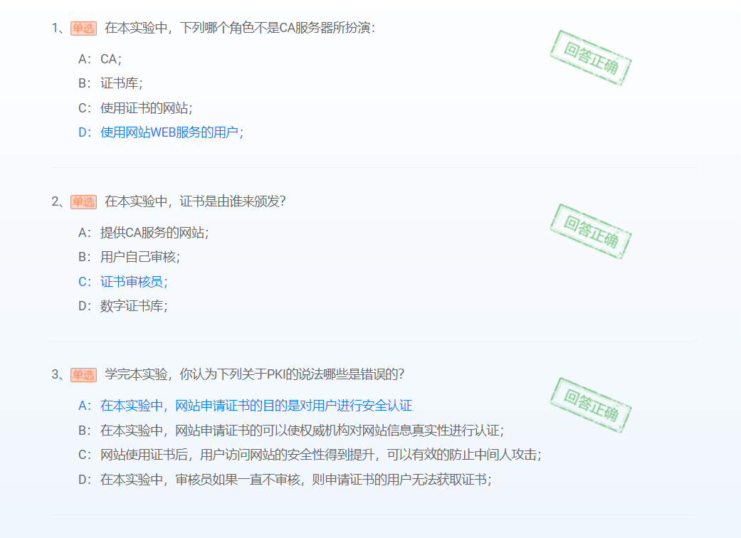 实验过程中建议使用IE浏览器,如果不使用IE,可能会导致后续实验过程中证书不能下载。
