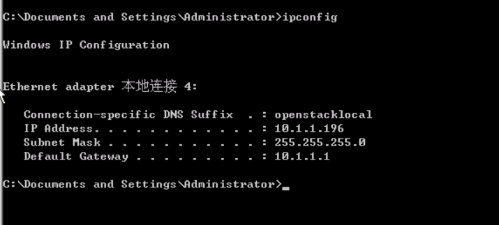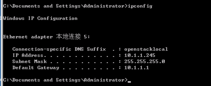 1、远程桌面方式登录到CA服务器,在CMD下查看本机IP地址: