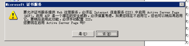 在安装完成后会提示启用Active Server Page,点击“确定”