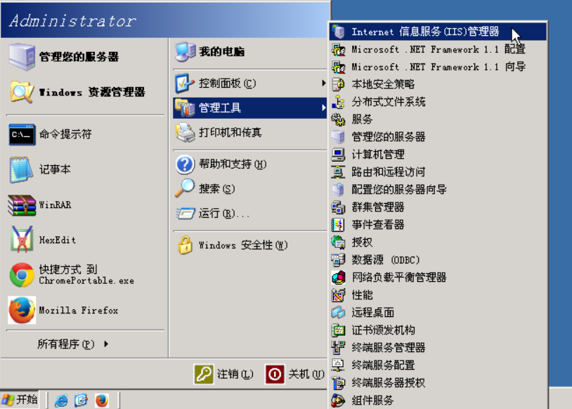 安装完成后会发现有管理工具中多了“Internet信息服务(IIS)”,找到并打开: