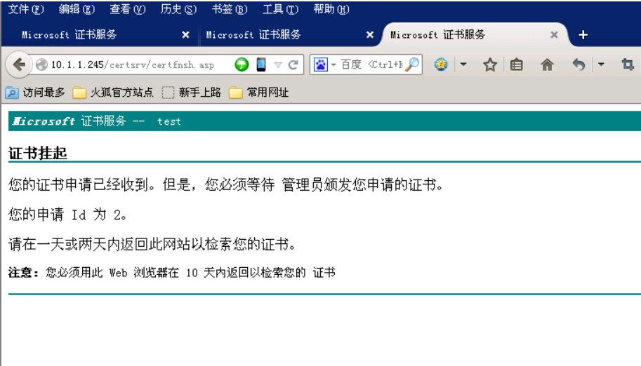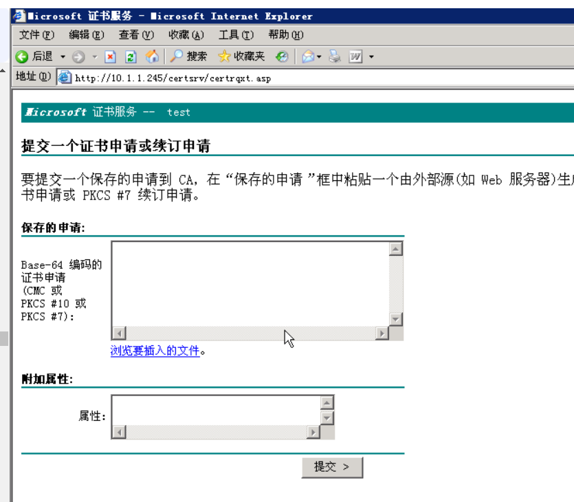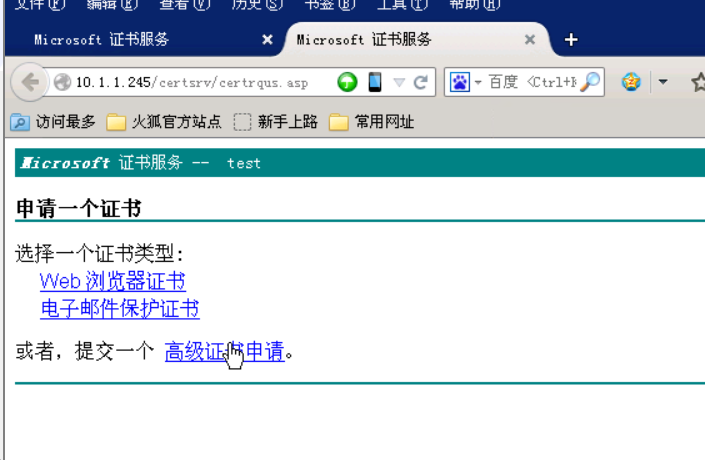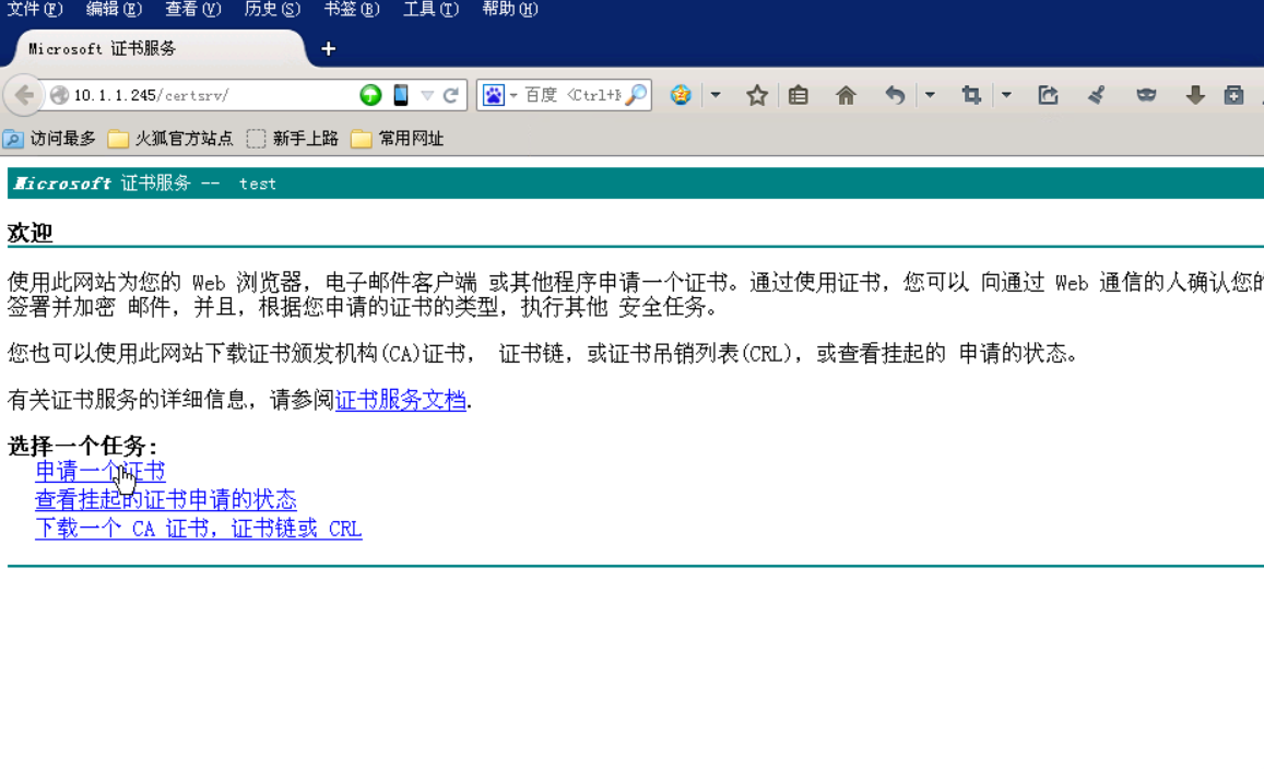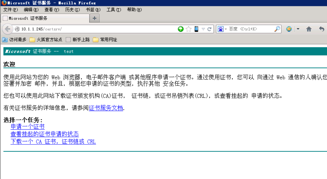 打开浏览器输入 http://10.1.1.245/certsrv/ 可以浏览证书服务器