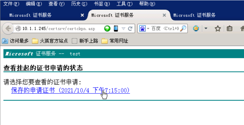 打开浏览器,输入刚才我们搭建的证书服务器地址: