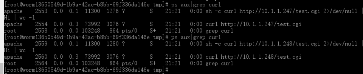apache 3742 0.0 0.6 73992 3072 ? S 14:03 0:00 curl http://10.1.1.16/test.cgi