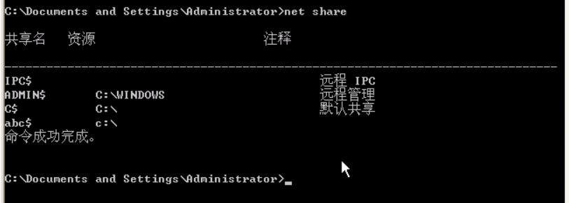 命令:net share abc$=c: