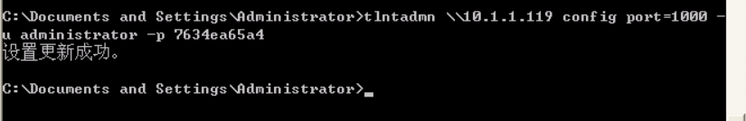 输入tlntadmn \\10.1.1.119 config port=1000 -u administrator -p 主机B的密码