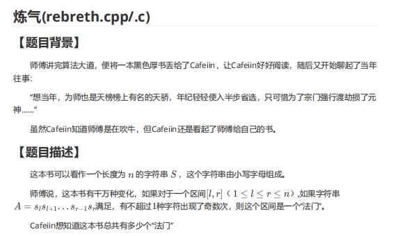 接着,对于每个处理好的子串其中的每一位,若该位为\(1\),则对应字符出现了奇数次;若该位为\(0\),则对应字符出现了偶数次。